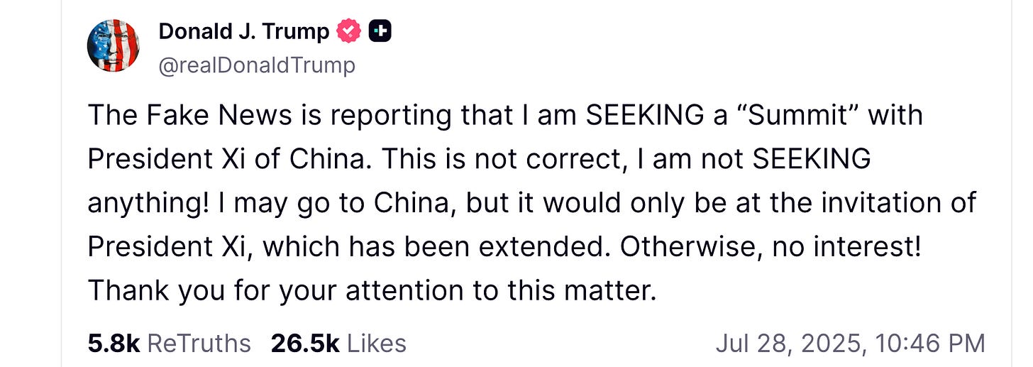 Some Trump defenders are using this quote to argue Trump has no choice but to soften the US stance towards China. But if that is the case then he was really poorly served by Treasury Secretary Bessent, Commerce Secretary Lutnick et al because they should not have been surprised that China had built up this leverage. Instead they went full bore ahead with bad information (remember Bessent saying China is playing with a pair of twos?) and a less robust hand than they realized and ended up making Trump look weak, while giving Xi a win he can tout domestically and to the rest of the world, as the leader who stood up to Trump and the US.